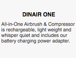 The Dinair ONE is the newest Airbrush innovation by Dinair. Discover the ultimate in convenience, ease and egonomic design. Instantly swap airbrushes for Makeup,Tanning and other specialties. Read More...